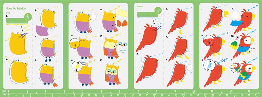 Young children can now develop their sewing and stitching skills whilst having fun! The thick lacing thread and big holes makes the stitching process easier for smaller hands. This kit contains 3 adorable themed characters, together with pre-cut felt sheets, felt deco stickers, plastic eyes, cotton stuffing and coloured string laces.