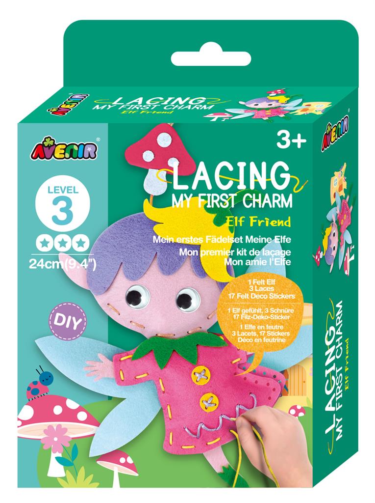 Expanding categories to a lower age, we have developed the 'Lacing My First Charm', targeted at children ages 3 and above.