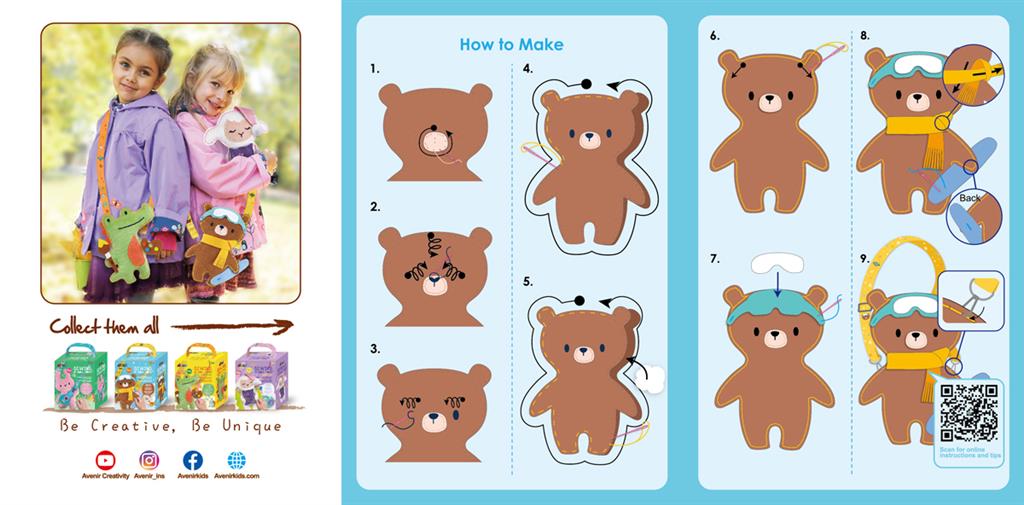 Following the step by step manual inside, kids can easily make the adorable animal friend. Soft corduroy material. Easy to sew with a safe needle! Includes a belt so you can easily carry your animal friend with you!