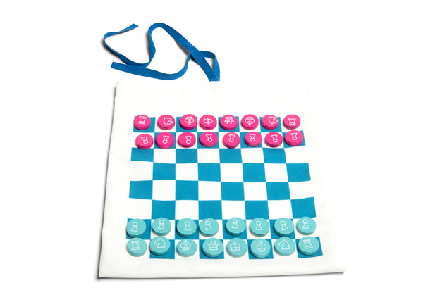 I am going on holiday and take with me.. the least as possible! Within this strong cotton bag, you will find as much as 3 different games! Play chess and checkers with the small wooden chips on one side of the bag of play Tic Tac Toe on the other side!