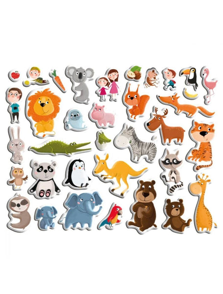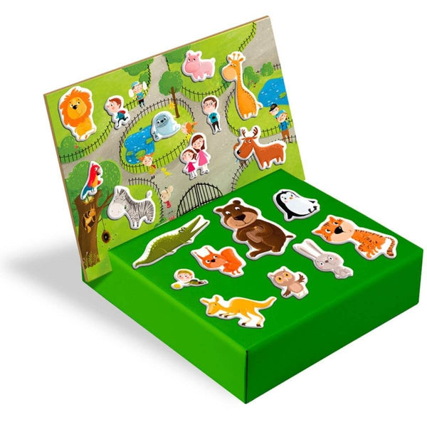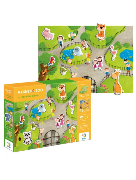 Open the box and create your zoo by placing on the board and the bottom of the box of 35 different magnetic pieces. There are animals, boys and girls, fruits and vegetables, etc. Ideal for developing fine motor skills, abstract thinking and imagination. It is a good resource to expand language related to zoo animals and have different conversations on the subject.