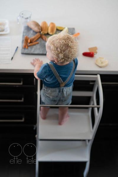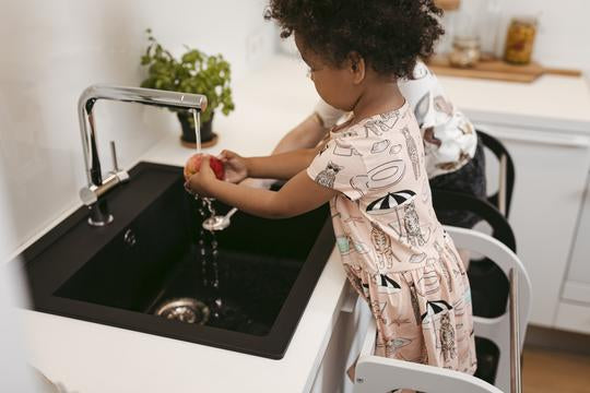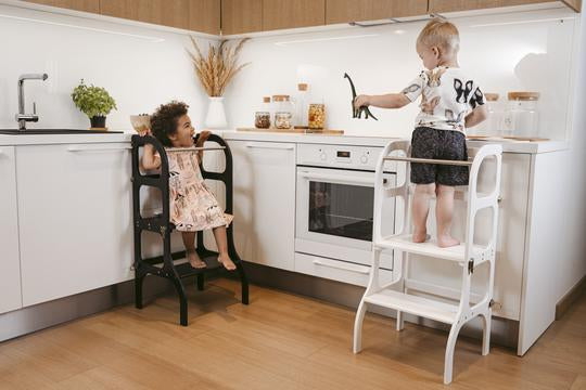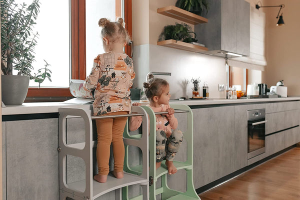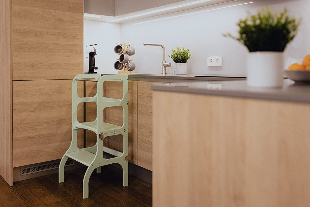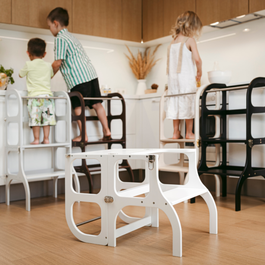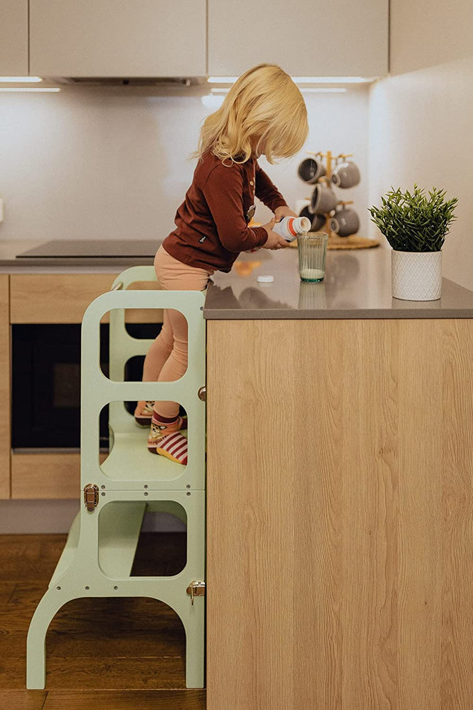Every child has the essence of curiosity inside! What is mommy doing in the kitchen? Maybe daddy needs help on the dining table? Convertible helper tower - table is the perfect furniture for your curious little angel if he or she wants to help you in the kitchen, or reach someplace higher. Step'n'Sit allows the child to safely reach kitchen surfaces and the sink to wash their hands and fruit. You can also involve them in cooking like mixing dough and cutting soft fruit.