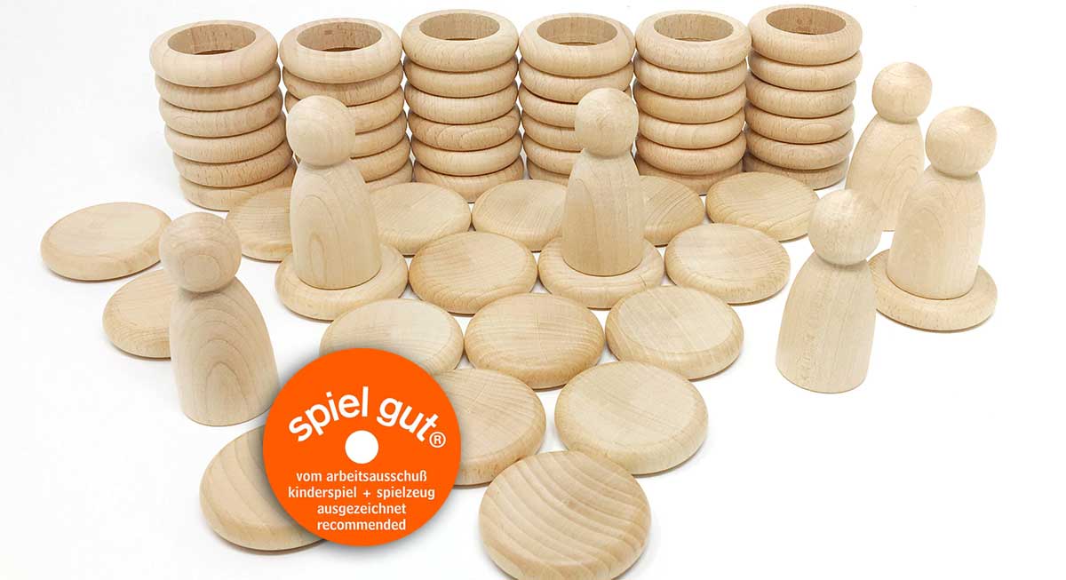 It contains 6 ‘Nins’, 36 rings and 18 coins in natural wood