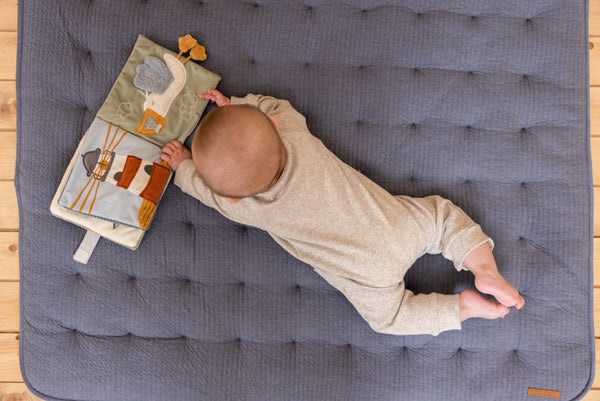 Never a dull moment with this touch-and-feel activity book about the life in Sailors Bay. Do you see the seagull on the sailboat? Find the pelican that’s ready to scoop up fish from the water. There are lots of different materials and activities to explore, such as a mirror, squeaky and crinkly toys. The soft booklet also has different labels that have a nice feel to them. The activities do not only stimulate the senses, they are also good for the development of baby’s hand-eye coordination.