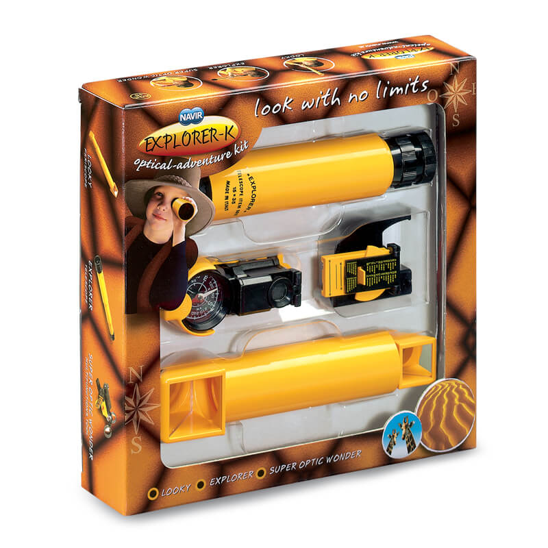 Kit for adventure and exploration composed of a 15X telescope, a Looky extensible periscope and a Super Optic Wonder (10 different uses).