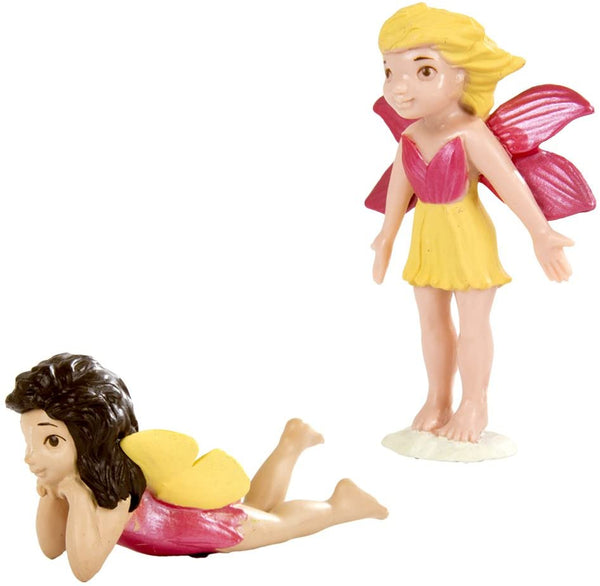 A collection of 12 hand-painted plastic fairies figures. The standing fairies are close to 3" tall.