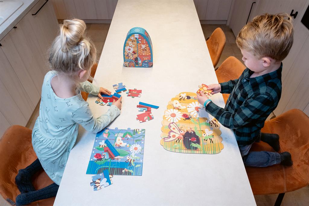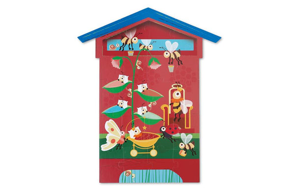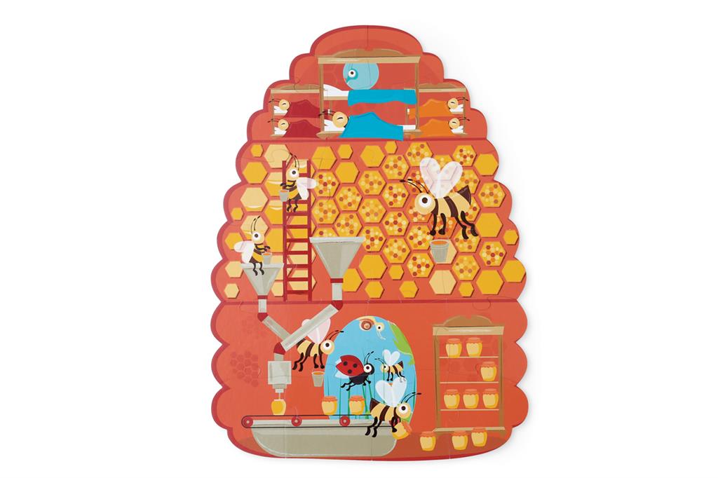 Learn more about the life of a colony of busy bees, both in and outside the beehive, with this original In & Out puzzle. The beautiful shaped box contains 2 double-sided jigsaw puzzles. Discover all 4 puzzles, full of surprising details and twists that will keep you entertained!