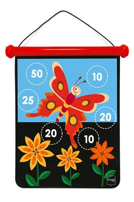 This wonderful magnetic darts game is unique in its concept and design. The magnetic canvas can be hung up in 2 different ways. The darts are made out of plastic with a metal tip and are not sharp at the ends, so the game is completely safe to play for children. The canvas and the 6 darts come nicely packaged in a tube of sturdy cardboard, so they can be easily stored.