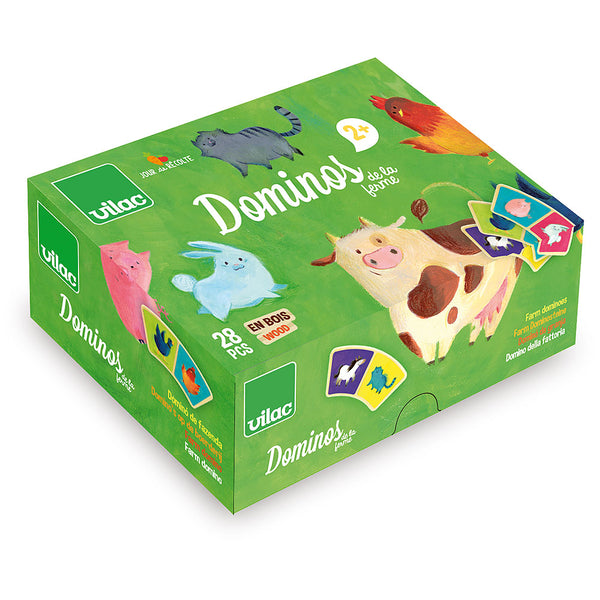 A traditional domino game with a curved shape and beautiful illustration from Vilac centred around the theme of farm life. To add another dimension to the game, the domino tiles are double-side: on one side there are pictures to play a matching game, and on the other side there are dots in the form of veggies. The pieces are large enough for children to assemble easily and play safely.