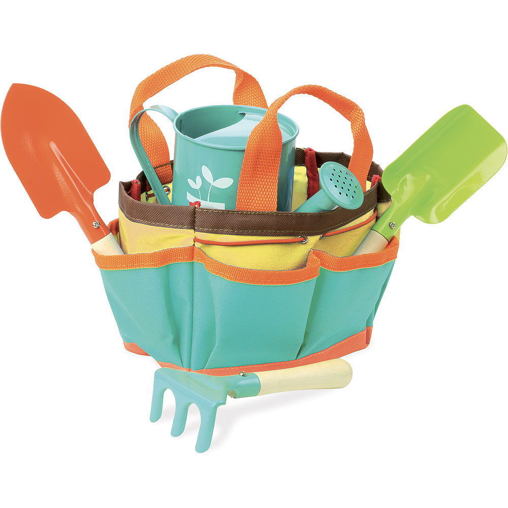 This Gardening Bag contains a watering can, a shovel, a rake and a spade. A beautiful set to play with in the garden!