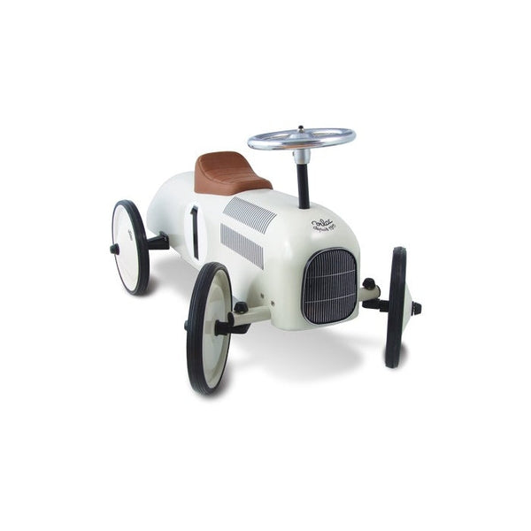 With this retro metal racing car ride-on, your child will feel like a real racing driver! Self-assembly. Available in different colours.