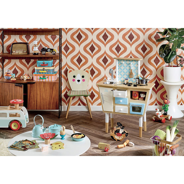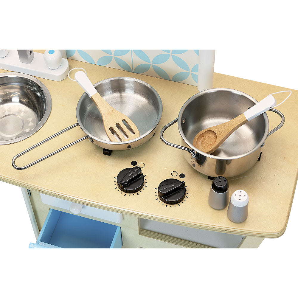Ready for some Imaginary play with this fab Vintage Kitchen set from Vilac. This play set is a real stand out for any bedroom or play area and comes with 6 accessories - 2 pans, 2 Cooking utensils & a salt and pepper set. Can also be paired up with any of our food play sets so your little one's imagination can run wild. This will make a great present that will provide hours of fun.